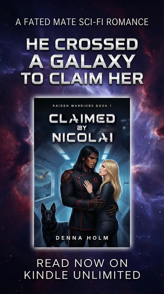 “Denna Holm’s Claimed by Nikolai is an amazing science fiction romance novel about love among different species, with political intrigue sprinkled throughout. The story is set on the Quadira ship in space and on the planet Raiden. The reader gets an insight into the lives of Raiden warriors, and how they are claim a mate from other species by injecting them with their shaprata and how they are ruling their planet … Claimed by Nikolai is altogether an enjoyable read with unique ideas, I recommend it for everyone who loves fantasies and love stories in general. Holm has brilliant writing technique, the book is filled with dialogue that constantly held my attention right from the start. — Literary Titan